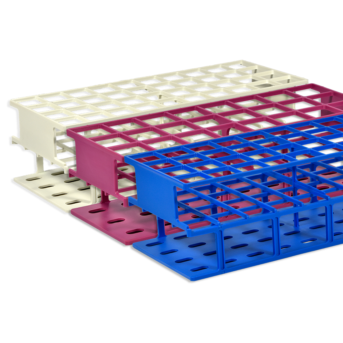These racks are molded in one place and have a three-tier grid design they have good chemical and thermal resistance and will not corrode or float in a water bath.