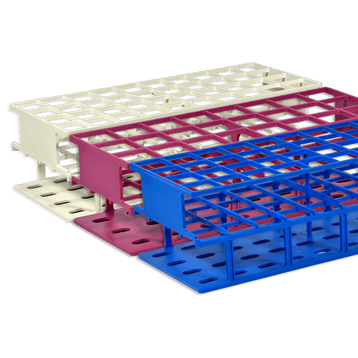 These racks are molded in one place and have a three-tier grid design they have good chemical and thermal resistance and will not corrode or float in a water bath.