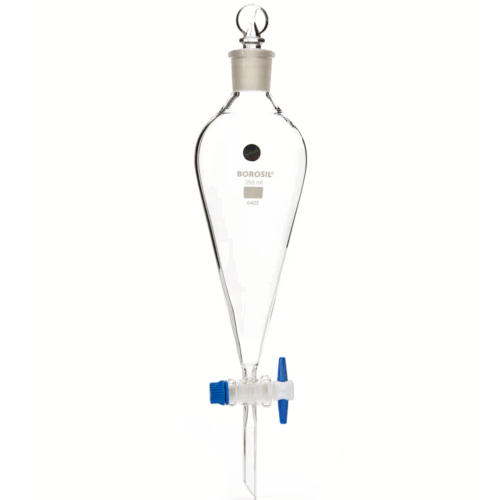 Separating, Pear Shape, Fitted with BorofloStopcock with PTFE Key and Interchangeable Stopper